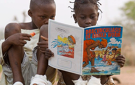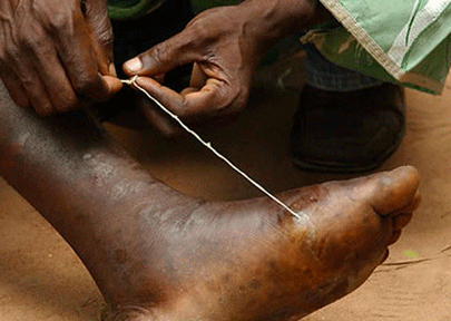 Guinea worm, or dracunculosis, is a devastating parasite like sounds like something out of a sci-fi horror flick. Contaminated drinking water spills guinea worm larvae into the intestine. Gradually the worm forms, thin but long, sometimes up to 3 feet. It then burrows to the surface, causing a painful blister. The unsuspecting human, seeking to relieve the pain, soaks the inflamed area. The new larvae are released into the water, continuing the effed up cycle.