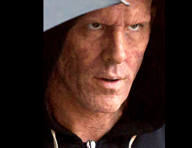 Physically powerful, Deadpool’s confidence is shattered such that he avoids his fiancée for months and hides behind his lycra mask. He finally builds up his courage to meet her outside of her apartment. As he walks down the public street, passersby react to his scars with shock and disdain. They look away and mutter under their breath. Broken by this response, he flees.